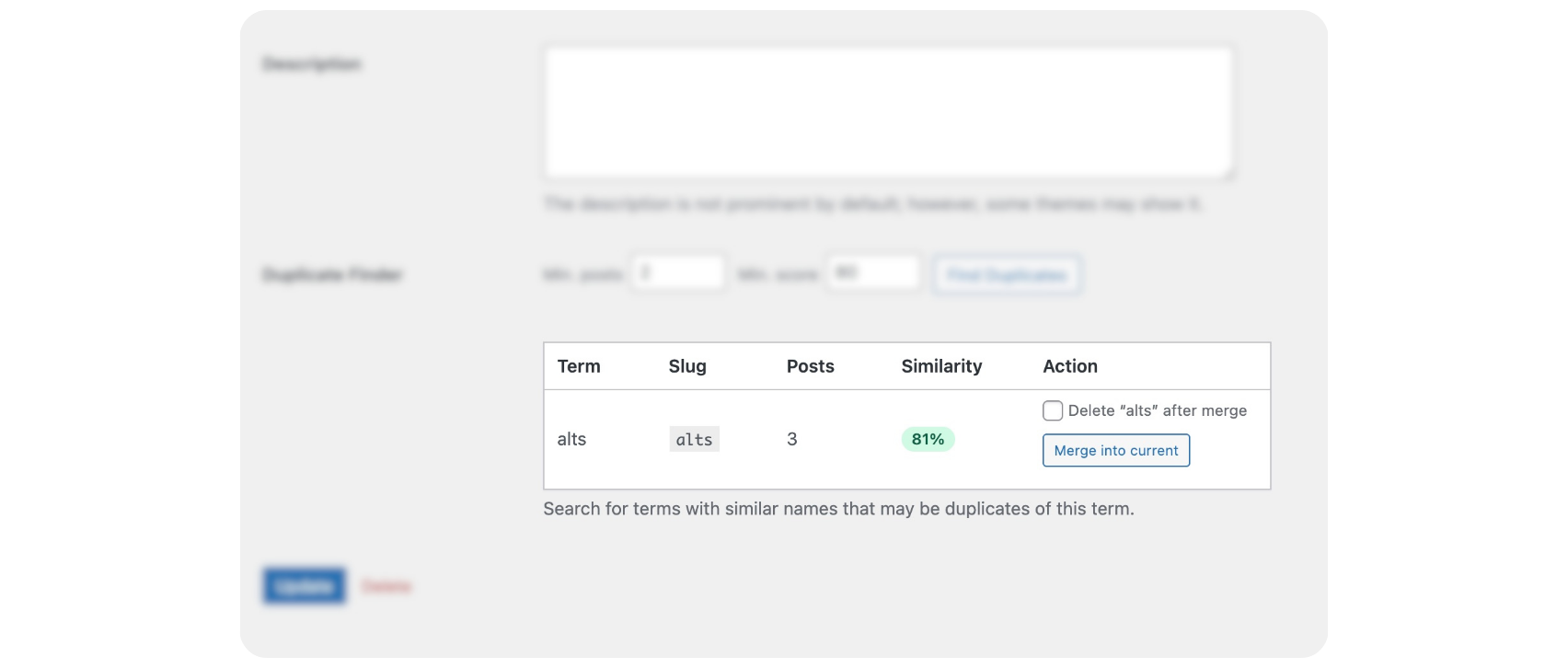 When a term is merged and deleted, its archive URL automatically redirects to the target term. Visitors and search engines land on the right page without any manual configuration.